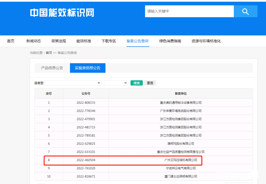 Guangzhou Airhorse Compressor Co., Ltd. has been officially listed in April 2022, proving that it has the ability to conduct energy efficiency testing and officially recognized strength.